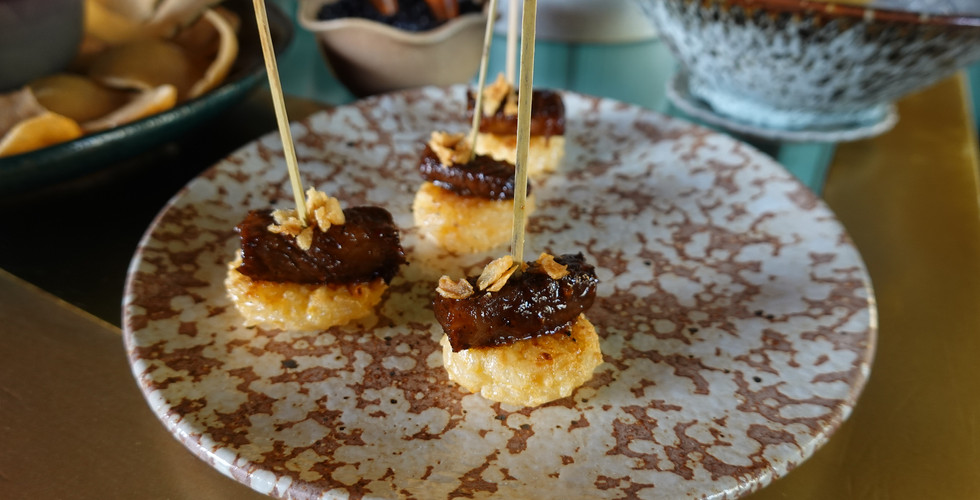 Kaprao Beef with Grilled Sticky Rice – A bold bite of Thai comfort with a smoky edge.