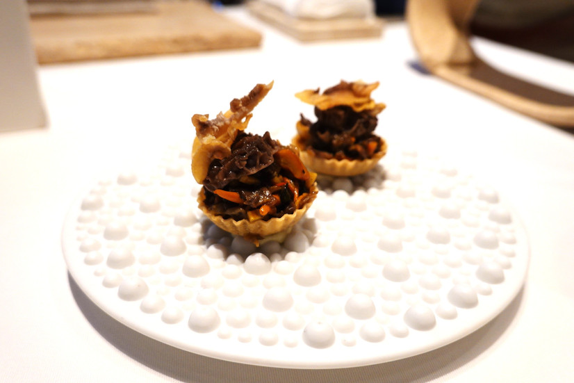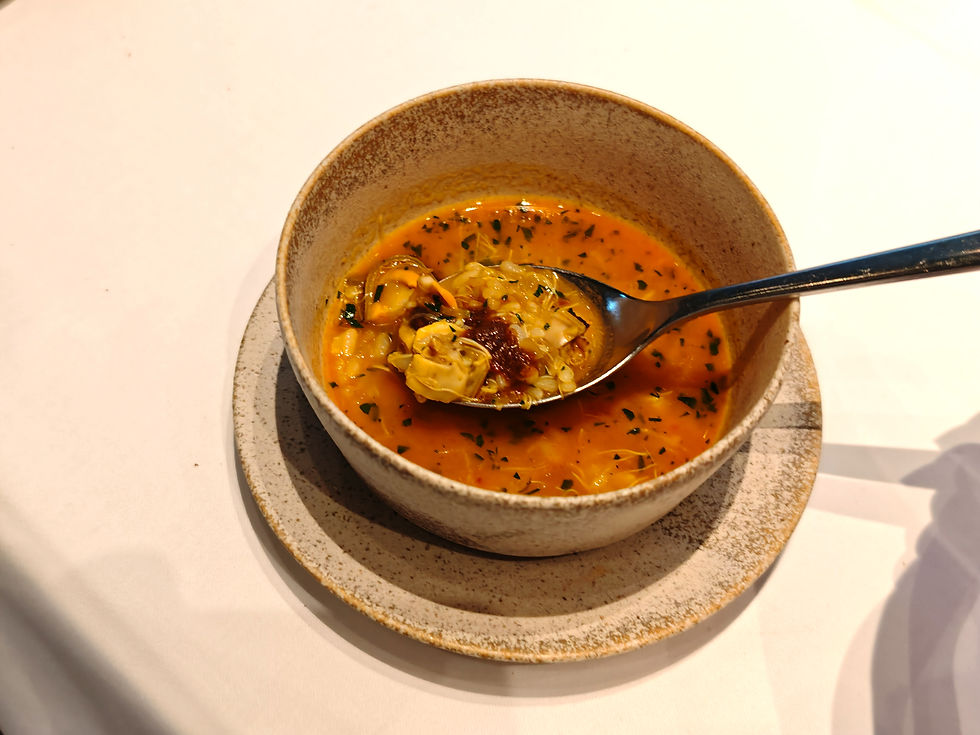 Pork leans into a more grounded expression—paired with sansai, artichoke, and a restrained chimichurri, the composition feels earthy, composed, and quietly robust